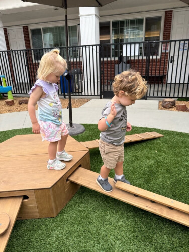 We have 4 different outdoor spaces for the children to explore. There is a play area just for our infants and 3 other playgrounds for our preschool-aged children. All the children get to spend around 1 1/2 hours outside per day.